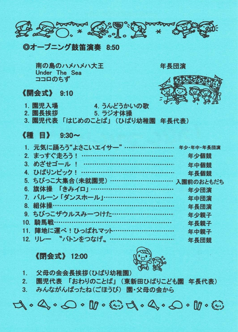 10月4日(土)はひばり幼稚園・東新田ひばりこども園合同の運動会です。未就園児(ちびっ子)の競技もありますので是非皆様で応援に来てください。お待ちしております。