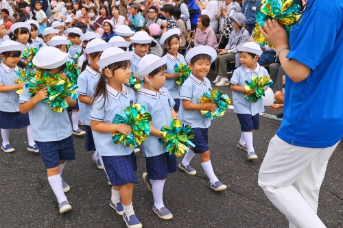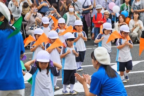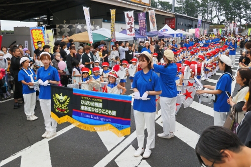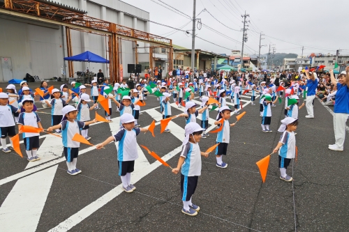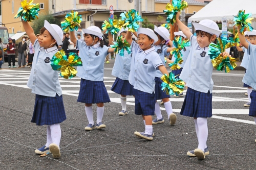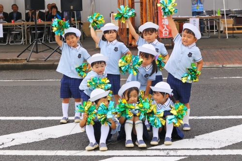 12日(日)お天気が心配されましたが「もちむね向井水軍祭り」に幼稚園部が参加しました。年長児と職員によるひばり楽団のパレード、鼓笛演奏、キッズダンス、旗体操と各学年ごと披露し、お祭りを盛り上げつことができました。皆様からの温かい拍手で子どもたちも自信をもって行うことができました。地域の方々に支えられて今後も頑張っていきたいと思います。