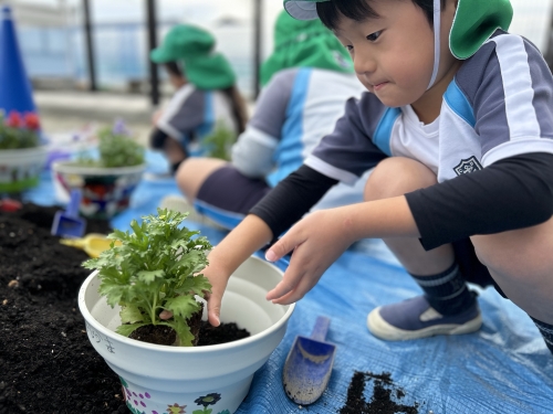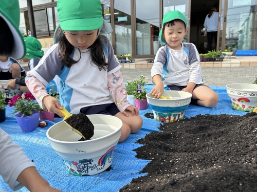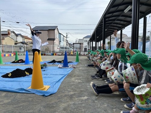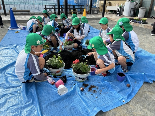 自分の手で一つ一つ植える事が出来ました💐卒園する頃には、チューリップの花が咲く予定です🌷みんなで大事に育てていきます⭐︎