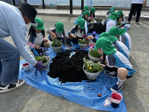 年長児が卒園にむけて「花育教室」を行いました。
