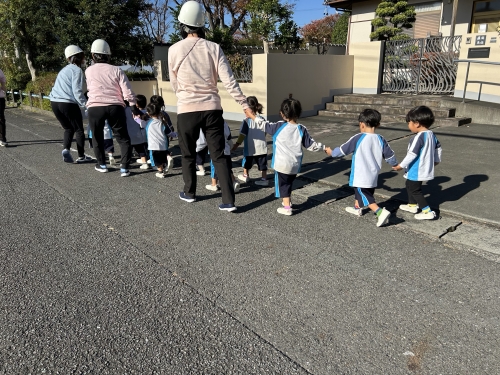 2歳児は先生とお友だちと一緒に上手に避難出来ました👏