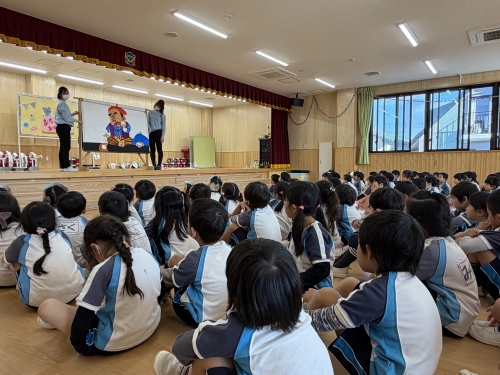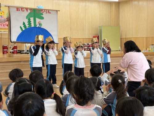 大型紙芝居「おむすびころりん」を先生からのプレゼント🎁