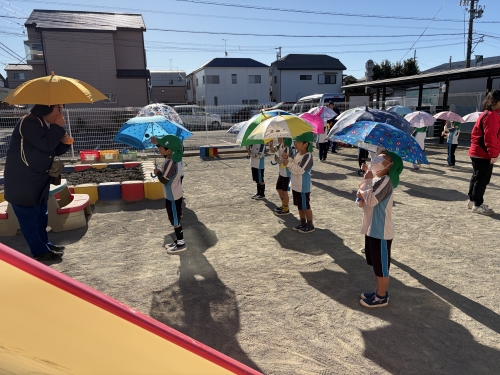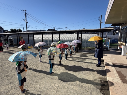 今回は傘☂️を持ってきてもらい、傘をさして道路を歩く練習です。上手に出来るかな?