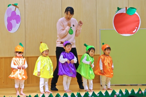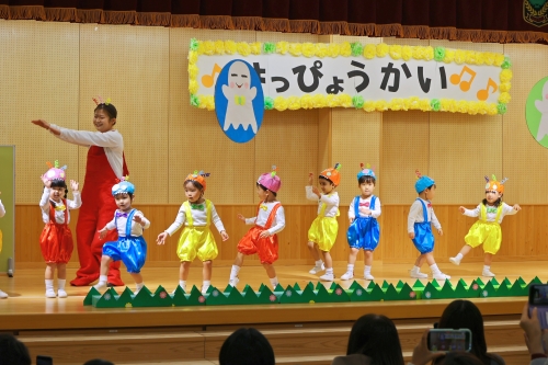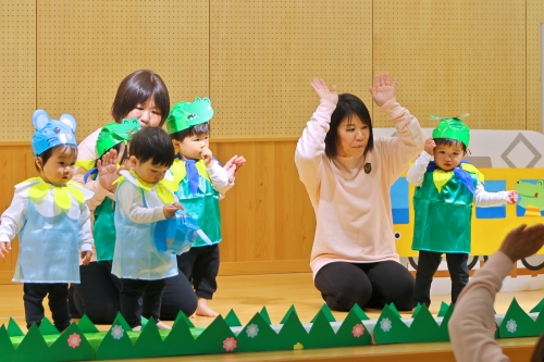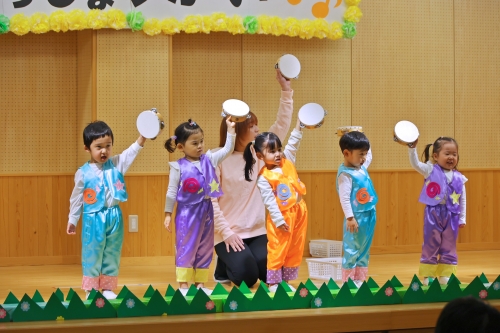 2歳児りす2組のお友だちはも練習通りに元気いっぱい発表出来ました❗️お歌を歌いながらの合奏も上手に出来たね❗️