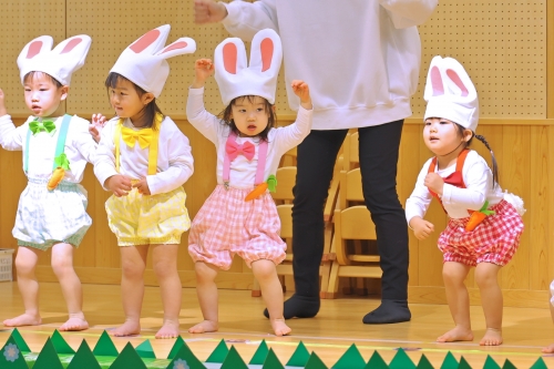 1歳児ぺんぎん1組は、うさぎさんになってバニージャンプ踊りがとっても可愛かったです🐇うさぎのしっぽもとっても可愛かったです♡