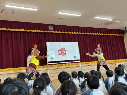 最後はパネルシアターの「3匹のこぶた」をやりました。オオカミさん頑張ってます❗️