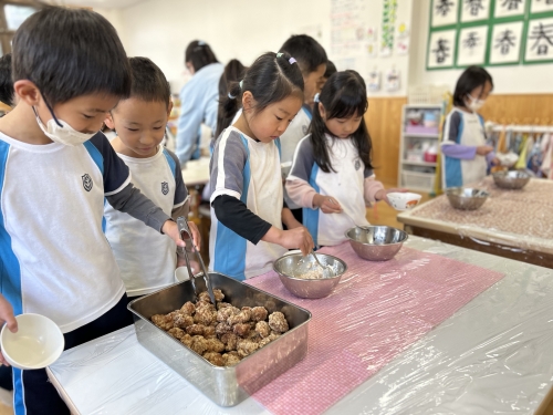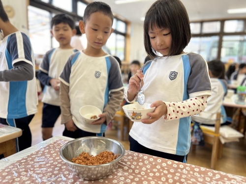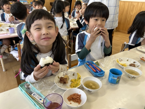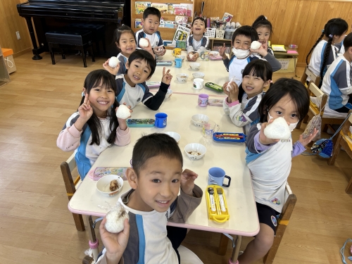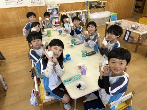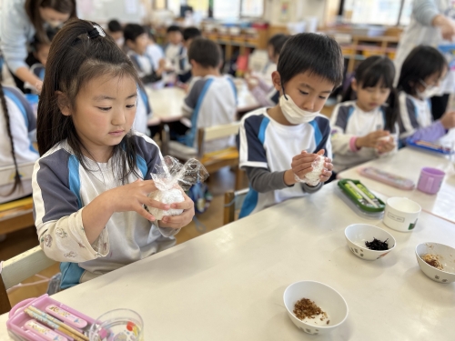 子どもたちに事前に、おにぎりの中身は何がいいか聞いて具を用意しました!