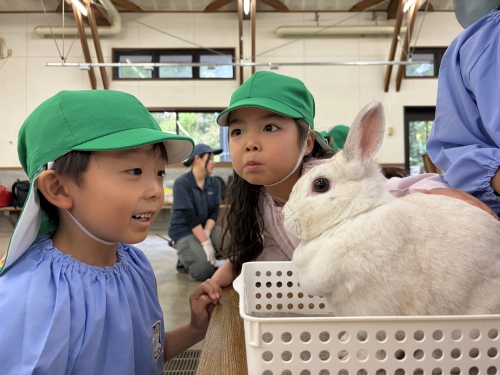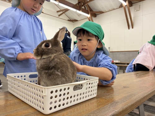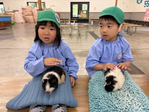 楽しみにしていた動物教室。モルモットを抱っこ出来て大喜びでした。