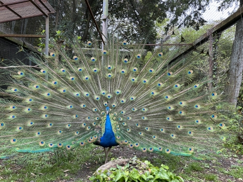 孔雀が羽を広げてお出迎えしてくれました。きれいでしたね。