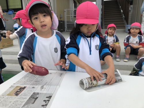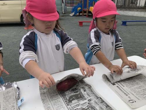前日に自分たちで新聞紙とアルミホイルでお芋を包みました