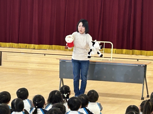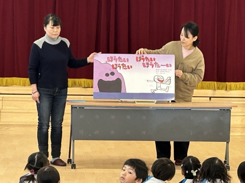 大きな絵本を使って読み聞かせをしていただいたり…