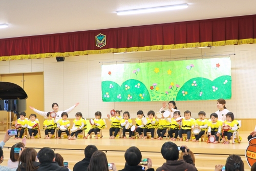 1月28日(水)保育部の発表会を行いました♪0歳児ひよこ組さん!泣かずに楽器遊びができたかな?