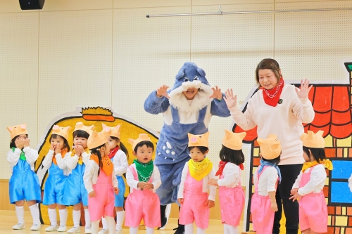 おゆうぎ『オオカミなんかこわくない』はりきってブーブー踊れたけど、ちょっとだけオオカミさんが怖かったね🐷