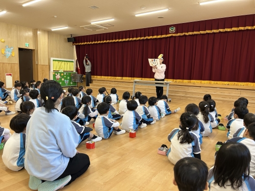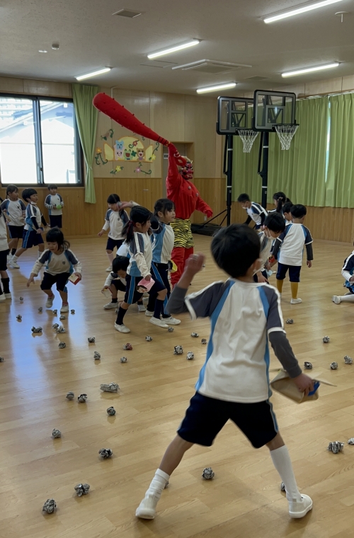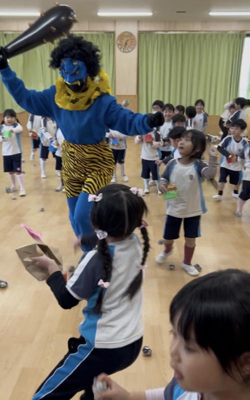幼稚園部は、節分の由来のお話しを聞いたり「まめまき」の歌をみんなで歌いました♩