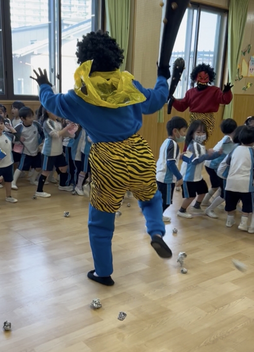 2歳児クラスのお友だちも頑張って鬼退治❗️最後は鬼さんと仲良しになれたね♡
