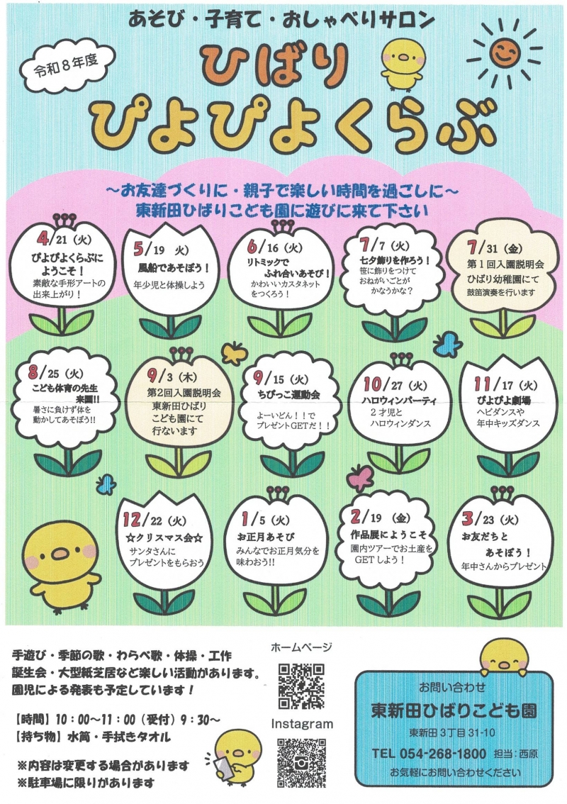 | 服装: | 親子で一緒に体操など体を動かします。 活動しやすい服装でお願いします。 |