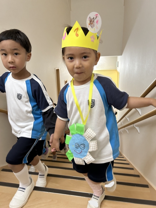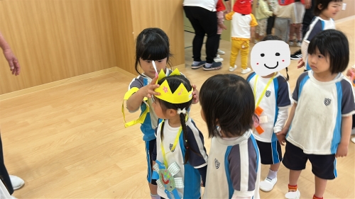 年長さんからは王冠を、年中さんからはペンダントのプレセント🎁嬉しいね☺